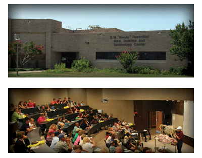 Additionally, the Rosenthal Center includes a 148-seat classroom that allows for easy transport of meat product from the coolers to the classroom while still on the rail. This makes it ideal to bring fresh meat products and carcasses into the classroom for optimal hands-on learning. The classroom is also equipped to handle all types of audiovisual equipment. In addition to teaching, it is often used for conferences, seminars, industry clinics, judging contests, and other Extension efforts. A small conference room is also available for meetings accommodating 10 people or less.